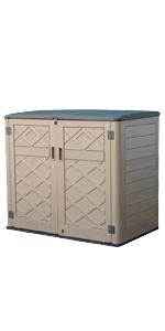 Horizontal shed capacity in 38 cubic feet,idea outdoor shed to hold garbage cans,generator,lawn mower.