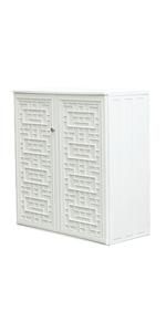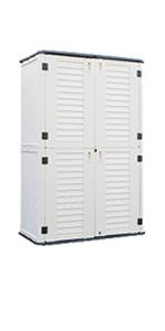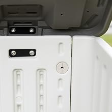 Outside storage cabinet with locking equipment to keep your outdoor items more safe.