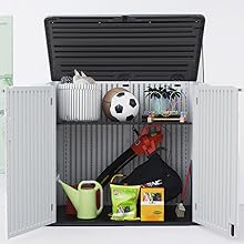 Mrosaa garden storage shed made ofimported polyethylene resin material,it's weather-resistant,waterproof,nontoxic and inodorous.
